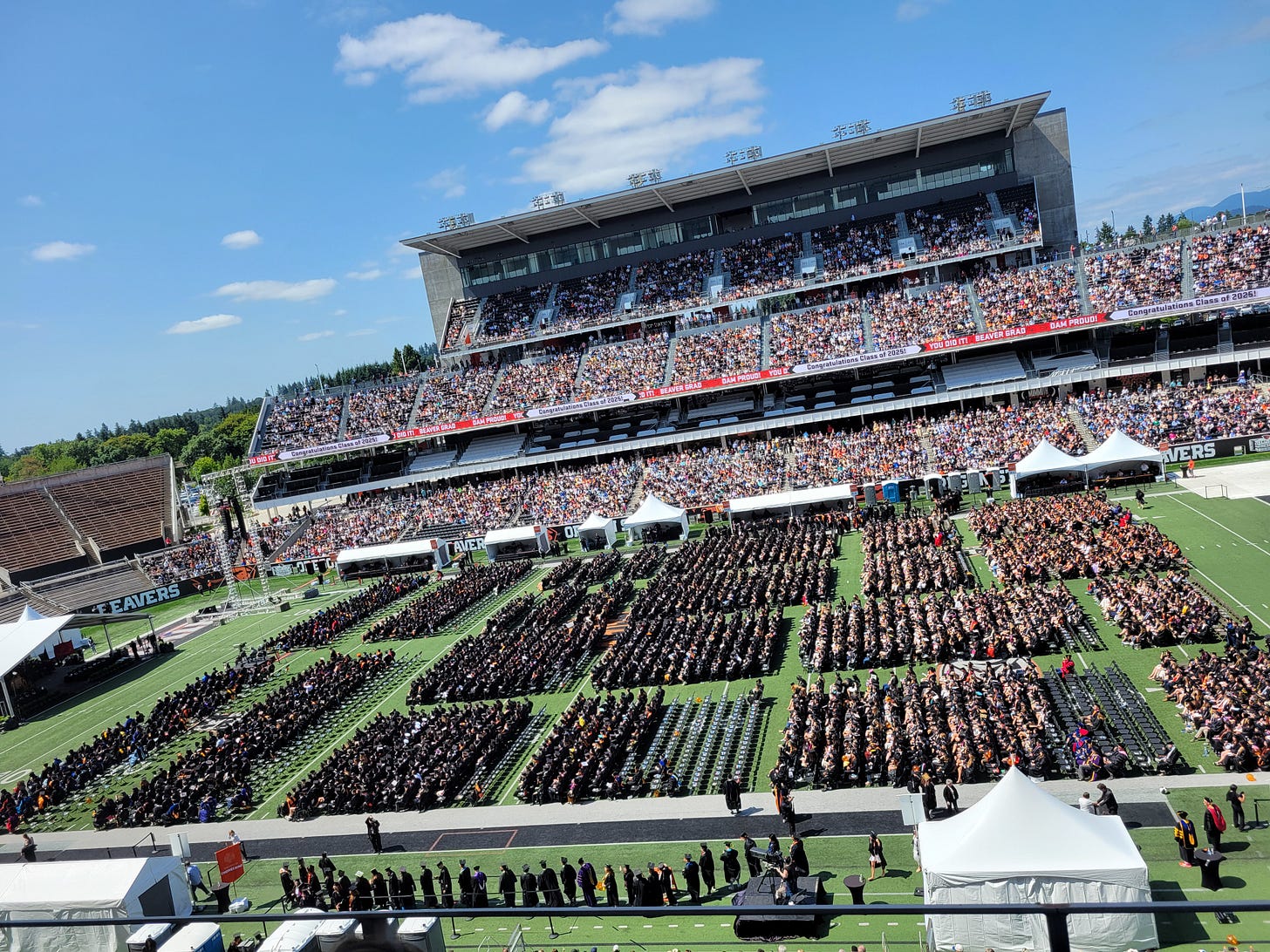 But I’m older now, and these trips were packed with activities. Much of what we did centered around Audrey Saiz’s graduation from Oregon State University. The experience was epic. I loved the speeches. I lost my voice trying to make sure Audrey could hear me from the top deck (she didn’t). And I love visiting Corvallis with its beauty and its people and its gyros. (Big shout out to Common Fields.) Sleeping on floors and occasionally in airports, long drives, and sitting for hours on end wore out my body.
